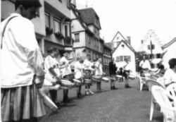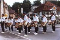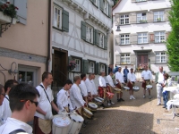 Und 1989 waren es dann anfangs gerade mal 7, die so durch die Gegend zogen, wobei einer noch an Krücken ging. Doch wie dann der eine und andere Berufene hinzukam, vollbrachte es sich schliesslich, dass die Neuen Alten nun auf die erstaunliche Anzahl von 20 Helden der Trommel gewachsen sind. Wobei alle auf ein Mal zu sehen noch niemand gelungen ist.